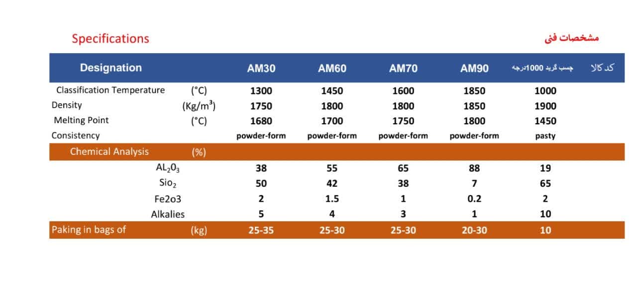 دسته بندی ها محصولات الیاف سرامیکی جرم و ملات های نسوز آلومینی آجرهای عایق و سبک آلومینی قطعات نسوز پیش ساخته بالشتک های عایق سیمان نسوز کلسیم آلومینی آجرهای نسوز آلومینی عایق های کلسیم سیلیکات محصولات پشم سنگ چسب نسوز پربازدید ترین ها بلوک های مدول سرامیکی الیاف فله (پنبه)سرامیکی سرامیک فایبر و فایبر گلاس کاغذ های سرامیکی عایقهای کلسیم سیلیکات بالشتک های عایق چسب نسوز چسب نسوز اشتراک در شبکه های اجتماعی توضیحات نظرات چسب های نسوز بصورت خمیری و گیرش در هوا بوده و مناسب برای چسباندن انواع عایق ها به جداره ها و همدیگر می باشند. دیدگاهتان را بنویسید لغو پاسخ امتیاز شما * 5 4 3 2 1 0 ذخیره نام، ایمیل و وبسایت من در مرورگر برای زمانی که دوباره دیدگاهی مینویسم. ارسال دیدگاه